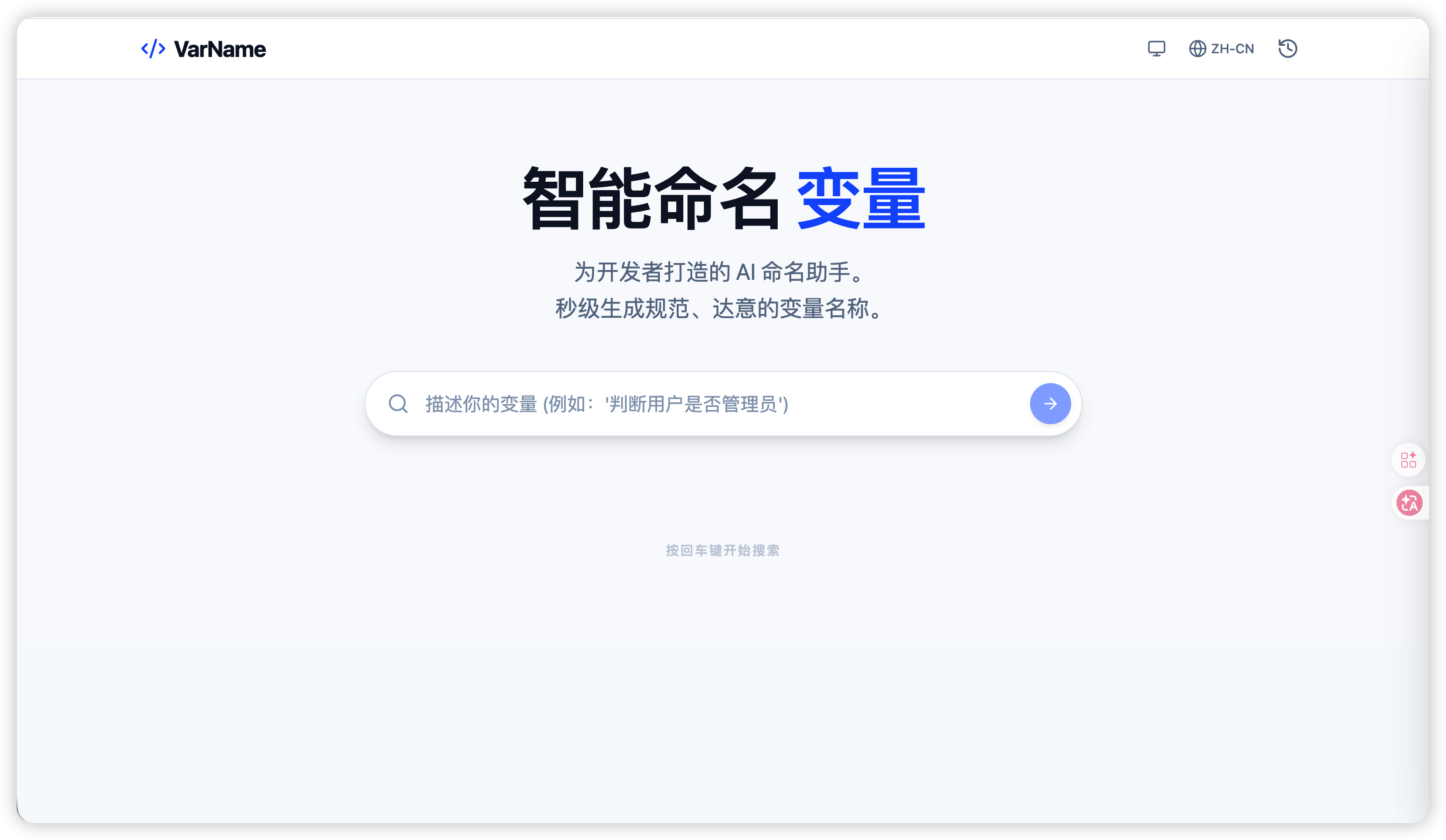 VarName 的定位很明确:把变量命名从“凭感觉翻译”提升为“有工程语境支撑的命名建议”。它不是简单的中英转换,也不是只靠词库拼装,而是尽量让每一个建议都能解释得通、用得安心。